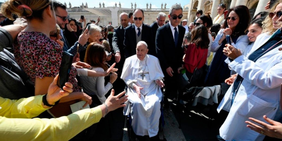 En la tarde del 10 de abril, los fieles que estaban visitando la Basílica de San Pedro se llevaron una gran sorpresa cuando, de repente, sentado en su silla de ruedas y sin su habitual revestimiento papal (iba con pantalones negros y una camiseta interior larga, además de estar cubierto con una manta), estaba ni más ni menos que el papa Francisco, que no dudó en saludar a quienes, emocionados, se acercaban a él.
