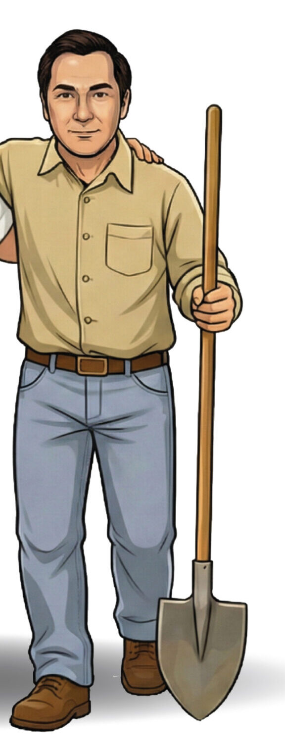 El beato Wenceslao Pedernera es representado con ropa de trabajo y una pala en sus manos, signos de su vida sencilla, familiar y profundamente insertada en la realidad del pueblo. Su figura recuerda que la santidad también se construye en el trabajo cotidiano, en el matrimonio, en la familia y en el compromiso social.