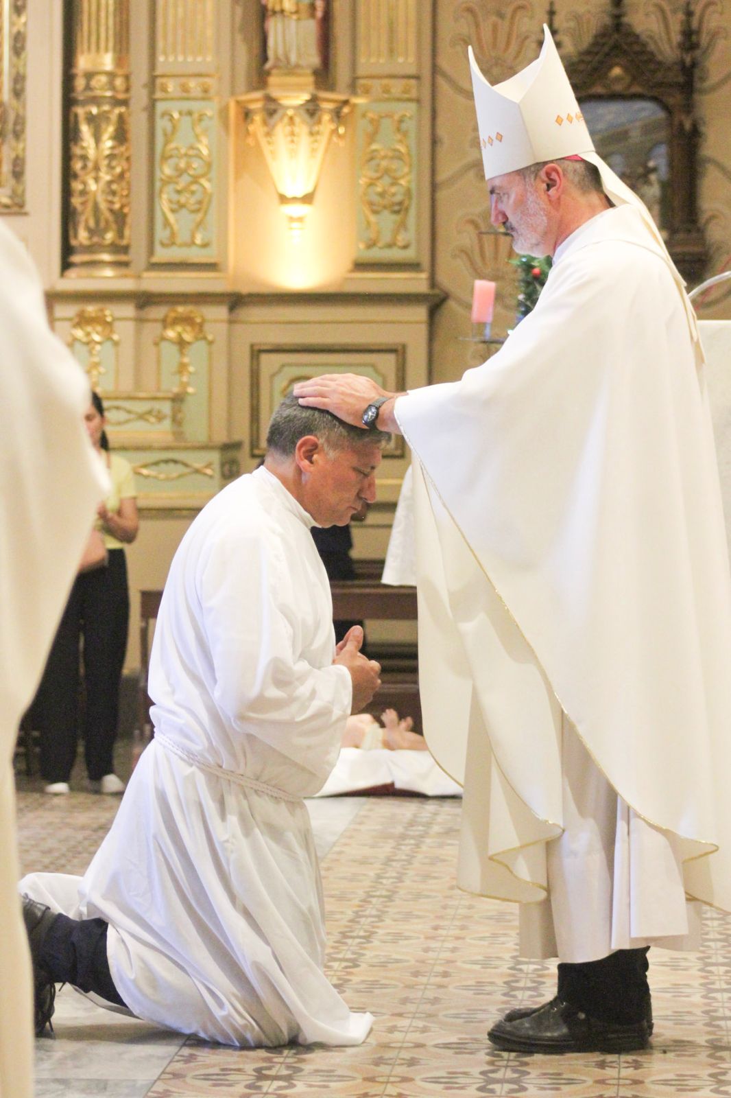 - Para llegar aquí hubo que transitar un período de formación específica que llevó su tiempo. La escuela del Diaconado “Wenceslao Pedernera” que funciona en nuestra diócesis ofrece un trayecto formativo común para todos, pero también lleva adelante un acompañamiento personalizado teniendo en cuenta la realidad de cada uno, de su familia, de su comunidad. En ese camino hay que ir asumiendo la realidad de cada vida y, al mismo tiempo, formarse en la vida orante, en la teología, en el servicio, de modo que la formación abarque todas las dimensiones de la vida y uno pueda servir con toda su persona lo más integrada posible. Damos gracias aquí, a los sacerdotes que te han acompañado en tu vida y en este tiempo de formación, a tandas religiosas y laicos que fueron y son parte de tu camino formativo.