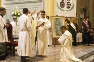 - Fabián, recibes la ordenación sacerdotal, en estos tiempos en que estamos implementando las conclusiones del Sínodo sobre la Sinodalidad. Queremos una Iglesia que favorezca la participación de todos los bautizados, que todos encuentren y vivan su lugar en ella y entreguen sus vidas en la construcción del Reino de Dios. Son muchos las necesidades de este tiempo que exigen del aporte de los carismas y talentos de todos. Se trata así de hacer realidad una ‘Sinodalidad Misionera’.