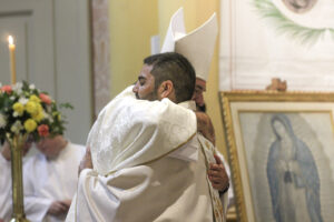 La emoción también alcanzó al propio obispo Dante Braida, quien, una vez concluido el rito de ordenación y ya como nuevo sacerdote, saludó a Fabián con las palabras: “La paz esté contigo”. En ese instante, su rostro reflejaba la profunda emoción de estar presenciando un momento de gracia para la Iglesia riojana, en una noche que quedará grabada en la memoria de quienes acompañaron la celebración.