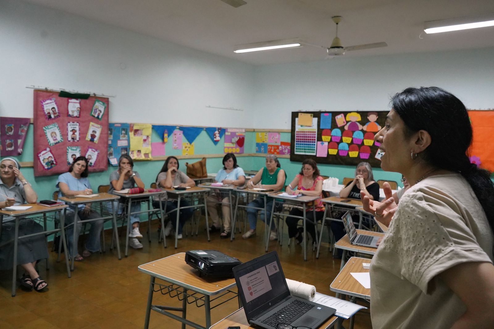 La Comisión Diocesana para la Protección de Niños, Niñas, Adolescentes y Ambientes Sanos participó de un taller de formación titulado “Comunicar para Proteger”, dictado por la Lic. Elisa de la Puente. La jornada, realizada en el Colegio Sagrado Corazón de Jesús, contó además con la presencia de Mons. Dante Braida y de los miembros de la comisión.
